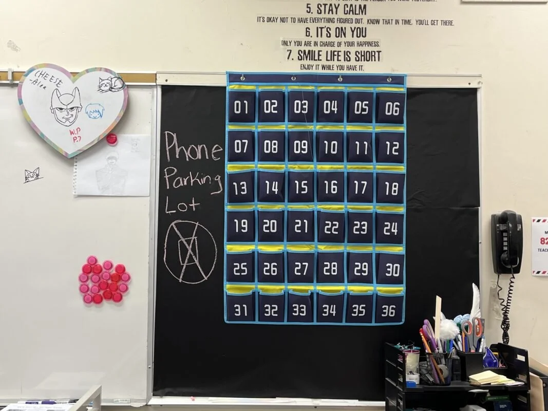 Even without district policies, some teachers have banned phones in their classrooms. Nicolle Fefferman, a longtime LAUSD educator and co-founder of the Facebook group Parents Supporting Teachers, is one of them. When cellphones are not tucked away, Fefferman said, it can be challenging for teachers to “police” their use.